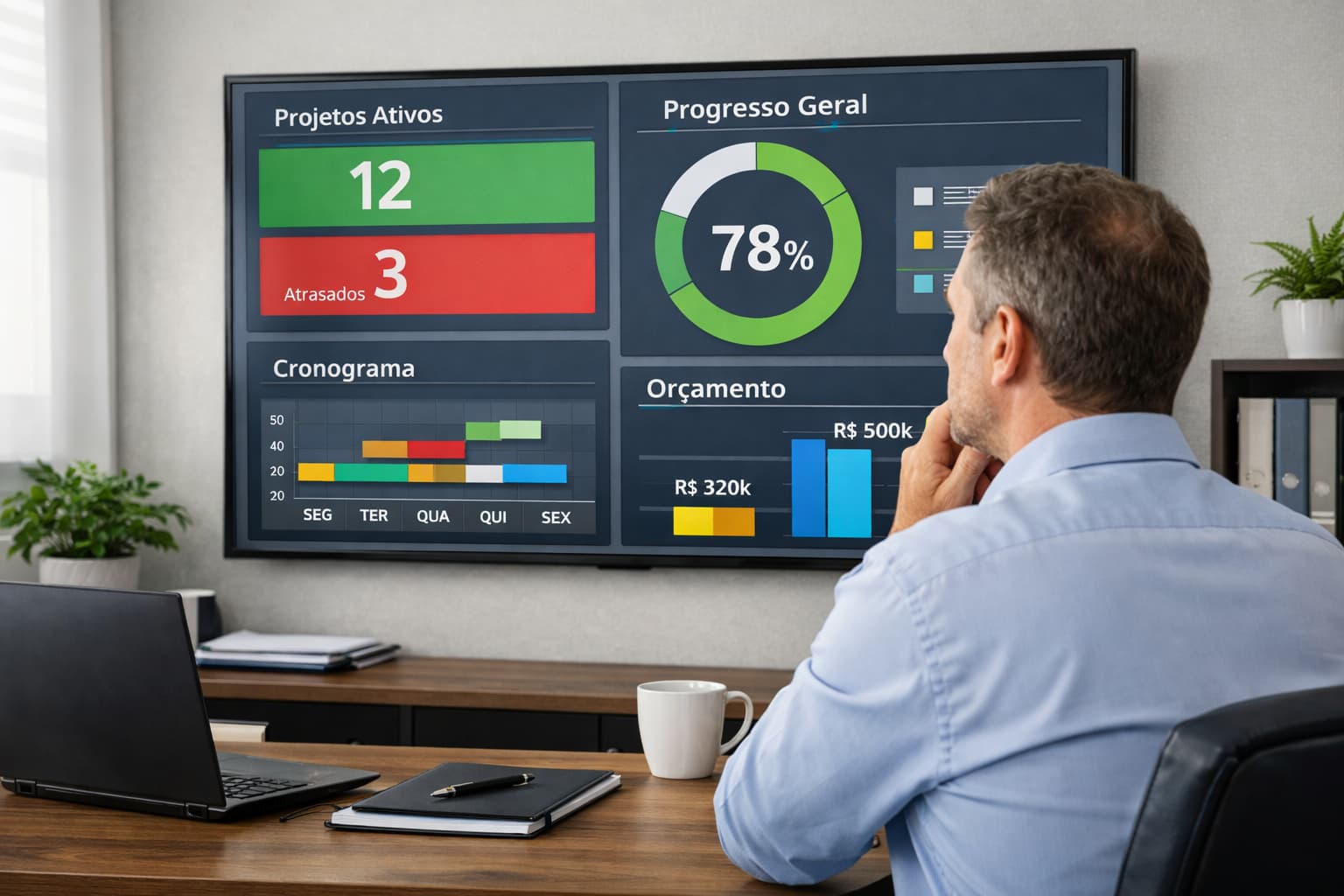 Quando projetos têm dono, indicadores e rotina de acompanhamento, boa parte das calls simplesmente deixa de existir. O gestor participa menos, não porque perdeu controle, mas porque o sistema passou a funcionar sem depender dele o tempo todo.